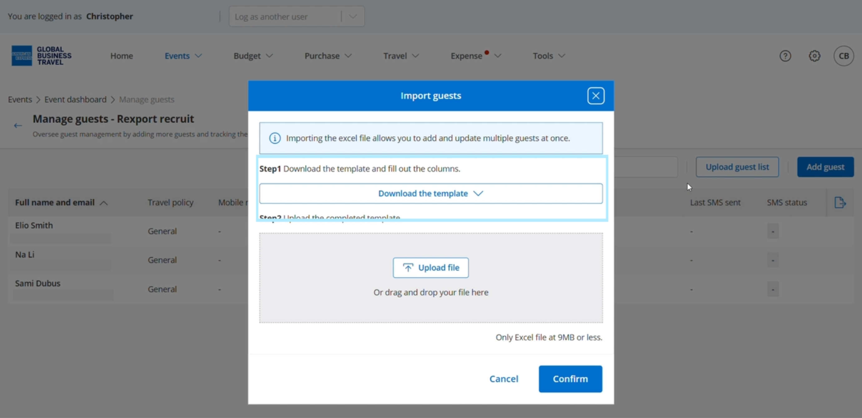 When uploading a guest list, the admin defines whether a guest is an HCP.