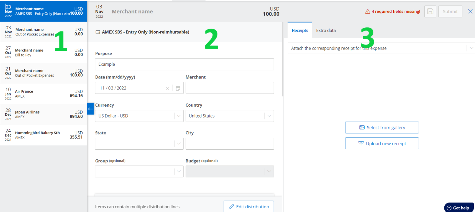 Note: A receipt is required to justify an expense. If you're missing your receipt, select 'Justify lost/not available receipt' and confirm the expense was for the event attendance purpose.