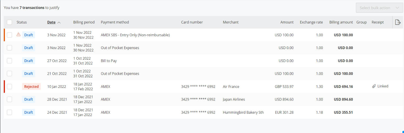 Tip: For travel booked within Amex GBT's platform, the airfare receipts will automatically link to the transaction.