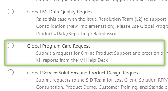 Step 1: Within Salesforce, click Cases > New > Global Program Care request